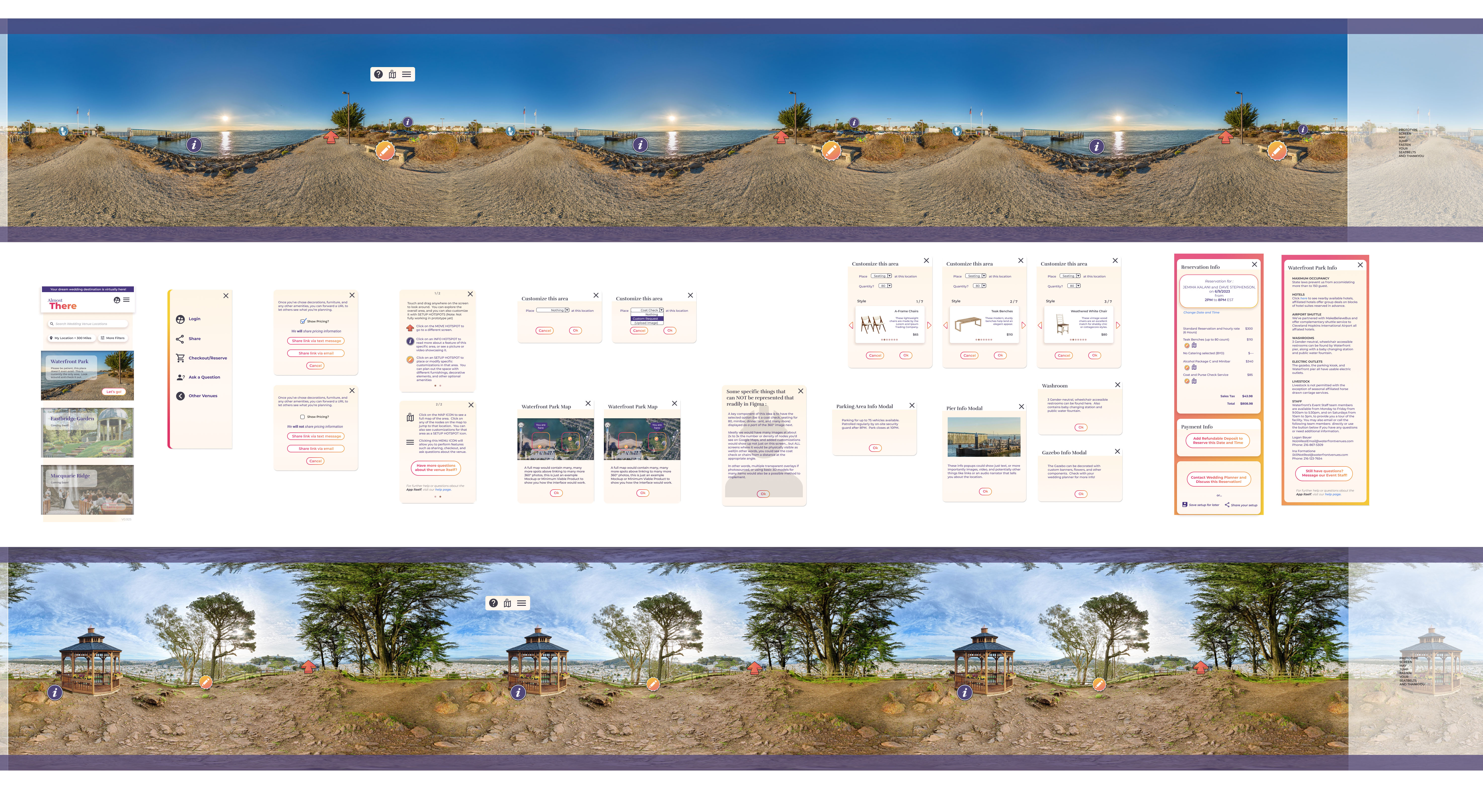 Two distinct personas were devised to help bring two different use cases to the forefront. A primary user planning a wedding and wanting to select customizations, and a secondary user group (friends or family) that would want to see the customized venue and give feedback. You can meet Jemma and Troy in the slide deck if you’d like, and read more there.