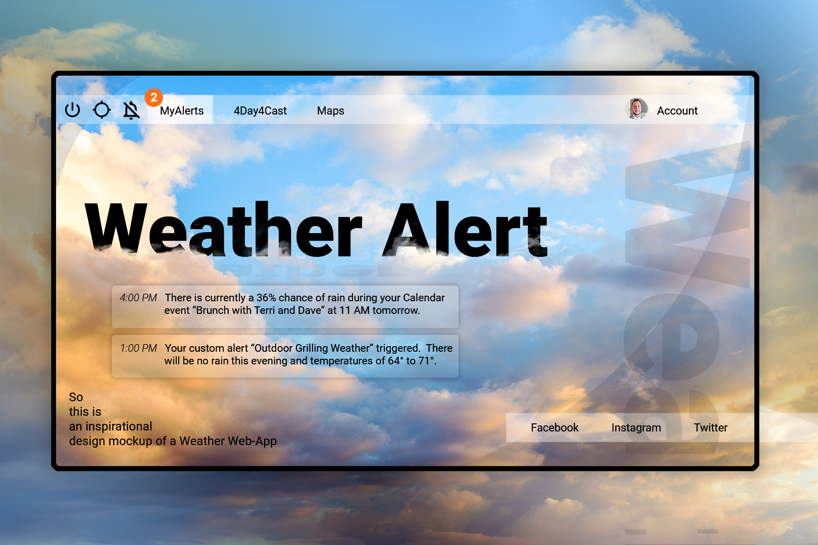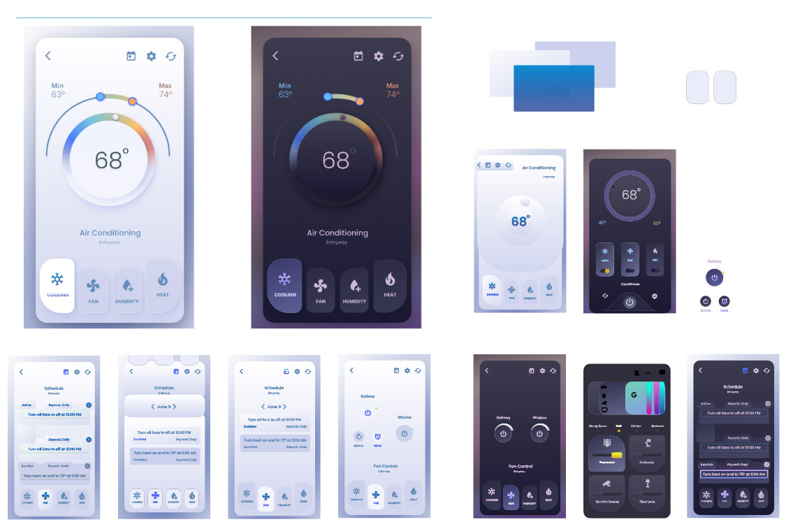 These are some examples of current unfinished projects, a responsive travel website theme, a weather app with calendar alert integration, and the beginning of a UI system for a connected home.